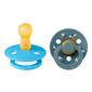 BIBS Studio Colour Bumblebee Latex Mushroom Mix kombinerar stil och funktionalitet i en charmig design. Förpackningen innehåller två nappar i ljusblått och gråblått, båda dekorerade med små bin. Den klassiska runda BIBS-skölden har tre ventilationshål som säkerställer god luftcirkulation och minskar hudirritation. Nappen är tillverkad av mjuk naturgummilatex för en behaglig sugupplevelse.