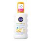 Nivea Sun Kids Sensitive Protect Spray SPF 50+ är en solkräm för barn som ger extra högt skydd mot solens strålar. Nivea solkräm ger både skydd mot UVA- och UVB-strålar som skyddar huden mot solbränna, långvariga hudskador och minskar risken för solallergi. Solkrämen är extra vattenavvisande och utan tillsatt parfym.