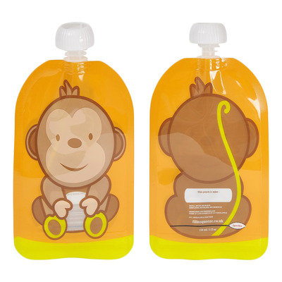 Återanvändbara matpåsar från Fill'n Squeeze är perfekta till hemlagad mat som du vill ta med eller vill förvara på ett smart sätt. Med dessa påsar är maten redan från början uppdelad i portioner och du slipper att förvara maten i stora burkar. Påsarna tål både kylskåp och frys samt mikrovågsugn (högst 30 sekunder - glöm inte att ta bort locket innan). På påsen kan du också se hur mycket barnet har ätit. Varje påse rymmer 150 ml.