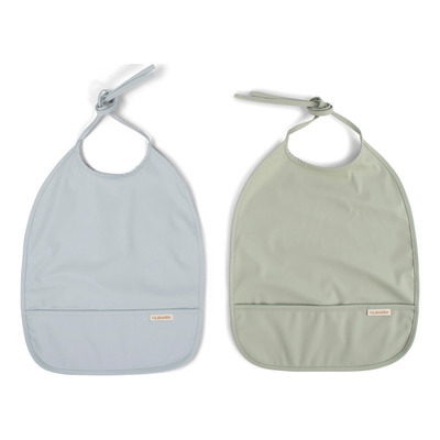 Filibabba Haklapp med knytband 2-pack i färgerna Pearl Blue + Desert Sage samlar upp mat och vätska