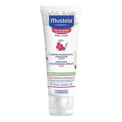 Den lugnande ansiktskrämen från Mustela har ingen tillsatt parfym och är speciellt framtagen för barn med mycket känslig hud. De naturliga, aktiva ingredienserna i krämen återfuktar och lindrar både rodnad och stickningar. Produkten är gjord med 97% ingredienser av naturligt ursprung och är dermatologiskt testad.