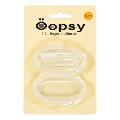 Oopsy 2in1 fingertandborste rengör och masserar försiktigt barnets tänder och tandkött
