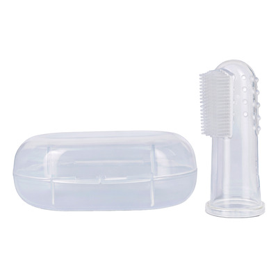 - Mjuk fingertandborste i 100% livsmedelsgodkänd silikon