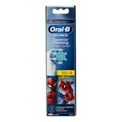 Borsthuvudena är dekorerade med Spider-Man, vilket gör tandborstningen roligare för barnen. Borsthuvudena har extra mjuka borststrån och ett litet runt huvud som är särskilt utformat för barn.