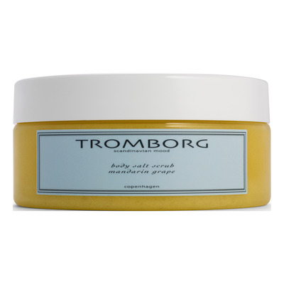 Tromborg Body Salt Scrub Mandarin Grape är en exfolierande kroppsskrubb med fint salt från Döda Havet, mandelolja och eteriska oljor av mandarin och grapefrukt. Saltet avlägsnar döda hudceller och mjukgör huden, medan oljorna binder till saltet och bevarar hudens fukt. Huden lämnas sammetslen, mjuk och förnyad.