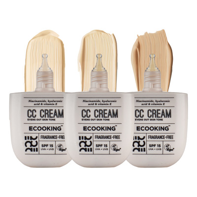ECOOKING CC Cream kombinerar hudvård och makeup i en färgad kräm som korrigerar rodnad, jämnar ut hudtonen och ger ett naturligt resultat. Krämen innehåller hyaluronsyra och E-vitamin som återfuktar och skyddar huden, samt niacinamid som förbättrar hudens struktur och minskar ojämnheter. Den lätta konsistensen gör den lätt att applicera och lämplig för daglig användning.
