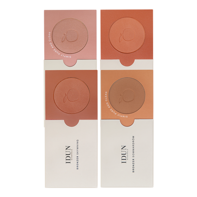 IDUN Minerals Mineral Bronzer är formulerad med ultrarena mineraler som ger en byggbar täckning för ett naturligt resultat. Perfekt för att uppnå en mjuk, varm och vacker bronz look, oavsett om det är för en solkysst sommarglöd eller en definierad kontur. Bronzern finns i både matta och strålande färger, så att du kan hitta den som passar dig bäst. Applicera bronzern med en borste för att bygga upp önskad intensitet och skapa en felfri look. Bronzern är idealisk för daglig användning och passar alla hudtyper, även de mest känsliga.