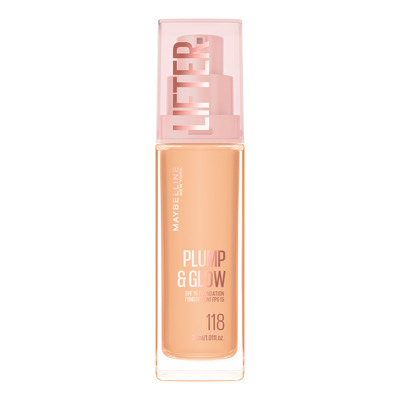 Maybelline New York Lifter Plump & Glow Foundation i färg 118 ger din hud lyster och fyllighet