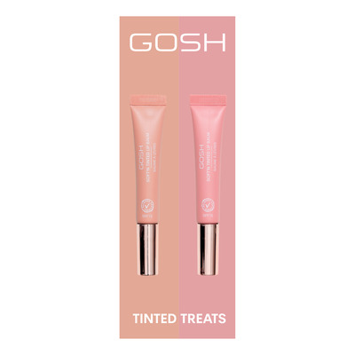 GOSH Tinted Treats är en presentförpackning med två återfuktande läppbalsam som ger glans, färg och vård till läpparna