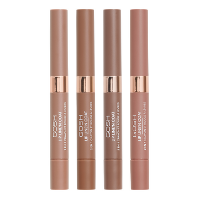 Lipliner från GOSH med dubbla ändar - med lipliner i ena änden och en matt coating i den andra. Produkten är inspirerad av Hollywood och 90-talet och gör att din lipliner håller ännu längre. Dessutom är den vattenfast och smittar inte av sig.