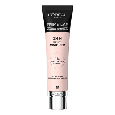 Prime Lab Advanced Derm Primer 24H Pore Minimizer från L'Oréal Paris bidrar till att minimera synligheten av porer i upp till 24 timmar. Primern används före makeup, som bas. Basen skapar en smidig och jämn utgångspunkt som ser till att makeupen håller längre. Primerns formula är berikad med 1% AHA+LHA+BHA-komplex.