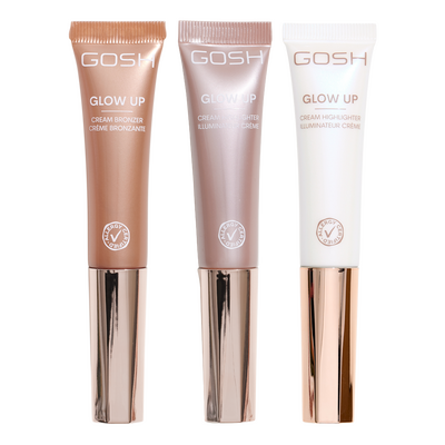 GOSH Glow Up ger dig vacker och glödande hud. Den finns i två olika färger som kan fungera antingen som en creme highlighter eller en cream bronzer. Den är lätt att använda både hemma eller när du är på språng. Den kommer i en mjuk tub med en inbyggd applikator som gör den lätt att applicera direkt på huden. Denna creme highlighter/bronzer har en lätt konsistens som är icke-klibbig, samtidigt som den nästan smälter in i huden.