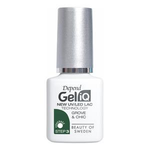 Depend Gel iQ Grove & Chic är ett professionellt gelpolish som ger en vacker och glansig finish. Det härdar under en UV/LED-lampa och kräver ingen filning eller stark primer. Med en mild Pre-Cleanser förbereds nageln varsamt och du kan sedan följa det enkla 5-stegs systemet. Lacken är lätta att applicera, även för nybörjare, och lampan härdar varje lager på bara 30 sekunder.