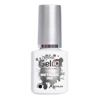 Depend Gel iQ Metallic Ink Platinum ingår i Depends professionella Gel iQ-serie som är känd för sina högglansiga och hållbara effektlack. Detta lack har en platinafärgad metallicfinish med 3D-effekt och ljusreflekterande pigment. Det är framtaget för att ge en exklusiv look med en spegelliknande yta, antingen som helfärg eller som effekt på delar av nageln. Lacket är täckande och ger ett intensivt resultat.