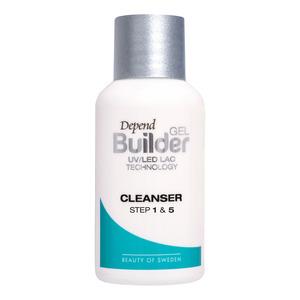 Depend Gel Builder Cleanser är en specialutvecklad vätska som används före och efter applicering av Gel Builder. Före behandlingen säkerställer Cleanser att nagelytan är helt ren och fri från fett och damm för optimal vidhäftning. Applicera produkten på en bomullsrondell och rengör nageln noggrant. Låt nageln lufttorka i ca 30 sekunder utan att vidröra ytan. Detta steg ersätter buffring och användning av primer.