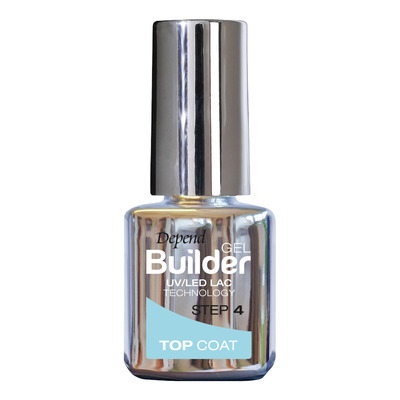 Depend Gel Builder Top Coat är det sista steget i Depend Gel Builder-systemet och ger en glansig och hållbar finish. Top Coat appliceras ovanpå buildergelen och härdas med Depend UV/LED-lampa i 2 x 30 sekunder. Top Coat förseglar lagren och skyddar naglarna från repor och stötar. Den klibbiga ytan som bildas efter härdningen avlägsnas enkelt med Gel Cleanser, vilket framhäver gelens glans och ger en slät yta.