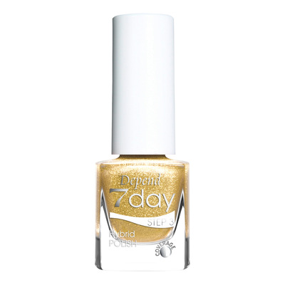 Depend 7day Country Chic 7370 är ett hybridnagellack med fantastisk glans och hållbarhet. Formulan ger en gelliknande finish och håller i upp till 7 dagar. Det är lätt att applicera och lätt att ta bort med vanlig nagellacksremover. Färgen är en skimrande guldfärg med klara glänsande partiklar för en festlig och exklusiv look. Lacket härdar i naturligt dagsljus eller lampljus och kräver därför ingen UV-lampa.
