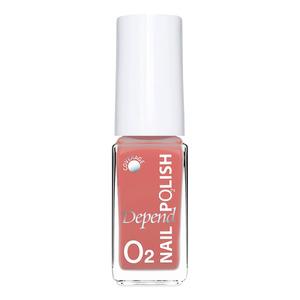 Depend O2 Minilack A821 är ett heltäckande korallrött lack med en syregenomsläpplig formula som gör att fukt och syre kan passera till nageln. Det är utvecklat i Sverige med fokus på skonsamma ingredienser och är lätt att applicera med den precisa borsten. Symbolerna på flaskan visar tydligt hur täckande lacket är. Den kompakta storleken gör det enkelt att ha flera färger i rotation.