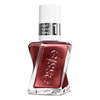 Essie Gel Couture Nail Polish 569 Size Me Up är ett djupt rödbrunt nagellack med metallisk pärlemor