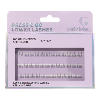Press & Go Lower Lashes är självhäftande underfransar som ger en komplett och väldefinierad look. De är utformade för att sitta bekvämt på din nedre fransrad hela dagen och kräver inget lim eller specialverktyg. Fransarna fästs enkelt med hjälp av en värme- och fuktaktiverad film som reagerar på din hud. När de placeras korrekt under de nedre fransarna och pressas lätt sitter de säkert och naturligt på plats.
