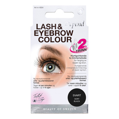 Depend Fran & Brynfärg innehåller allt du behöver för en perfekt färgning av ögonfransar och ögonbryn. Den är enkel och säker att använda med ett färgresultat som håller i upp till 6 veckor. Färgresultatet är permanent och vattenfast, vilket gör att du ser fräsch ut på morgonen när du tränar, solar, badar eller utför andra aktiviteter där det inte är optimalt att bära smink. Den permanenta färgen har en unik ört- och växtbaserad formula med bl.a. rölleka, ringblomma, grönt te och blåbär.