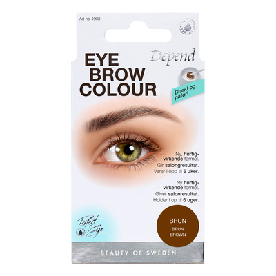 Depend Ögonbrynsfärg innehåller allt du behöver för en perfekt färgning. Den är lätt och säker att använda med ett färgresultat som håller i upp till 6 veckor. Färgresultatet är permanent och vattenfast, vilket gör att du ser fräsch ut på morgonen när du tränar, solar, badar eller utför andra aktiviteter där det inte är optimalt att bära smink.