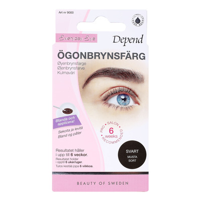 Med Depend Ögonbrynsfärg går det snabbt och enkelt att färga dina fransar och bryn hemma. Den ger ett permanent färgresultat som håller i upp till 6 veckor, så du ser extra fräsch ut på morgonen, när du sportar, solar, badar eller gör andra aktiviteter där du inte sminkar dig. Denna permanenta ögonbrynsfärg ger dig naturligt markerade och fylliga bryn på bara några minuter!