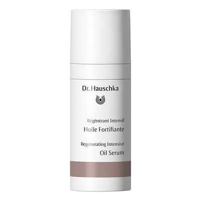 Dr. Hauschka Regenerating Intensive Oil Serum kombinerar oljans intensivvårdande egenskaper med kraften hos ett serum. Formulan innehåller närande mandel- och olivoljor samt extrakt av slånblommor som hjälper huden att bibehålla sin smidighet och elasticitet. Serumet förbättrar hudens skydds- och barriärfunktion och ökar dess spänst.