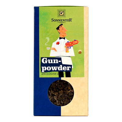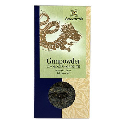 Ekologiskt grönt te, intensiv och bitter med lätt röksmak.