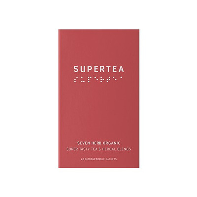 Seven Herbs Organic från Teministeriets Supertea-serie är ett underbart, koffeinfritt te baserat på 100% ekologiska ingredienser. Det innehåller pepparmynta, björnbärsblad och kamomill kryddat med koriander och anis. Dessutom har det en frisk citrussmak av apelsinskal och citronmeliss.