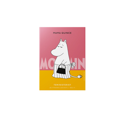 Mama Quince från Teministeriets supersöta Mumin-serie är en utsökt, svart te-blandning med fruktiga äpplenoter. Det innehåller också kvitten som ger en fin, aromatisk doft och smak. Te är i en fin pappersask med sött Muminmamma-motiv.