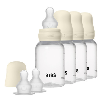BIBS Baby Bottle Round Silicone i färgen Ivory är ett 4-pack med robusta nappflaskor för naturlig komfort