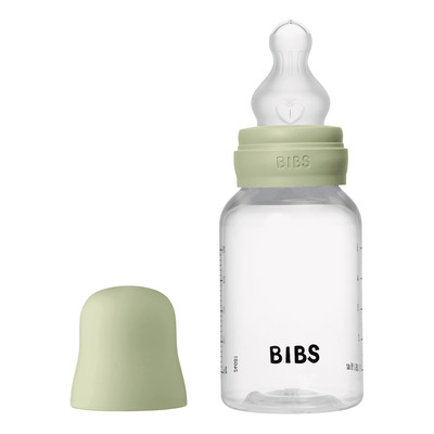 BIBS Baby Bottle Round Silicone 150 ml Slow Flow Sage är en prisbelönt nappflaska som kombinerar funktionell design och hög kvalitet. Flaskan levereras med en medicinsk silikonnapp som efterliknar moderns bröstvårta för att stödja barnets naturliga sugteknik. Antikolikventilen minskar luftintaget och säkerställer en bekväm matningsupplevelse. Produkten är BPA-fri och uppfyller EU-standarden EN14350 för maximal säkerhet.