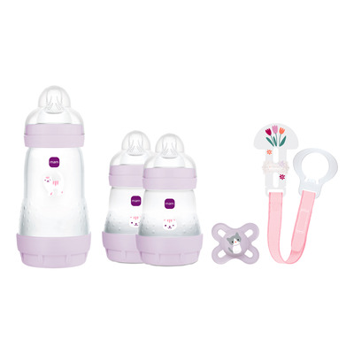 Presentförpackningen är perfekt för nyblivna föräldrar och innehåller allt du behöver för att komma igång. Flaskorna kan steriliseras i mikrovågsugn. Nappen är lämplig för nyfödda och MAM Clip fästs enkelt på barnets kläder.