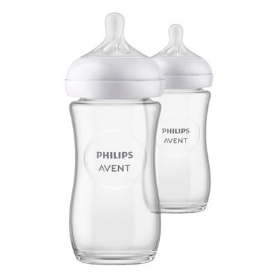 Philips Avent Natural Nappflaska Glas är tillverkad av högkvalitativt borosilikatglas som är värme- och temperaturbeständigt. Flaskan kan kylas, värmas och steriliseras på ett säkert sätt. Den har en antikolikventil som håller luften borta från barnets mage under matningen. Flaskan har en bred hals för enkel påfyllning och rengöring. Alla nappar är tillverkade av mjuk silikon och är BPA-fria. Förpackningen innehåller två nappflaskor av glas.