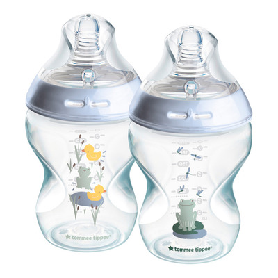 Tommee Tippee Natural Start Nappflaska 260 ml Deco Blue (2-pack) kombinerar en barnvänlig design med praktiska funktioner. Flaskorna har söta ank- och grodmotiv och blå detaljer som gör dem extra inbjudande. Den mjuka silikonnappen efterliknar bröstets rörelser och form, vilket ger barnet en trygg upplevelse. Nappen har ett långsamt flöde och är lämplig för nyfödda, vilket gör flaskorna idealiska för kombinerad amning och flaskmatning.
