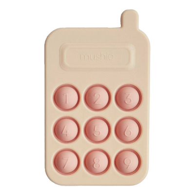 Denna Mushie Telefon är en rolig fidget-leksak inspirerad av telefonen, men gjord så att små barn kan hålla den. Leksaken främjar barnets finmotorik och sinnen samtidigt som barnet utforskar de roliga bubblorna som kan tryckas in och ut. Leksakstelefonen har en enkel design och är tillverkad av livsmedelsklassad mjuk silikon som gärna får tuggas på.