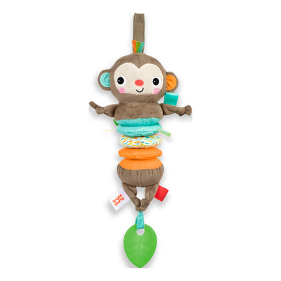 Bright Starts Drag- och aktivitetsleksak - Apa är tillverkad i mjuka material och har färgglada tillbehör som barnet kan utforska. Den kan enkelt fästas på barnvagnen, skötväskan eller aktivitetsstället så att den alltid finns nära till hands. Passar som present till barn från 1 års ålder.