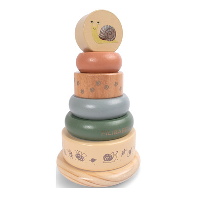 Filibabba Stapeltorn är en leksak som utmanar balans och motorik. Med sina sex träelement inbjuder det här stapeltornet små barn att utforska och experimentera med höjder och former. Den unika designen med en flexibel kärna ger extra stabilitet, medan den rundade basen ger en rolig gungande effekt under leken. Det roliga sättet att stapla på snurran gör leksaken till ett nöje att leka med och den charmiga snigelillustrationen ger en bedårande touch.