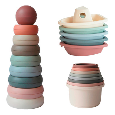 Mushie Toy Giftbox är CE-märkt och innehåller leksaker tillverkade av säkra material som stimulerar barnets sinnen och motorik. Både de stapelbara kopparna och badbaljorna inbjuder till lek i och utanför badet, medan ringtornet tränar koordinationen. Alla delar kan rengöras med varmt tvålvatten och lufttorkas efter användning.
