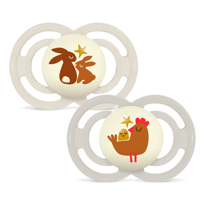 Den självlysande knappen gör det lätt att hitta nappen i mörkret och är praktisk på natten. Skölden, knappen och asken är tillverkade av ISCC PLUS-certifierat, biocirkulärt material. MAM Perfect Night är en funktionell och skonsam lösning som kombinerar komfort, säkerhet och ansvarsfull produktion.