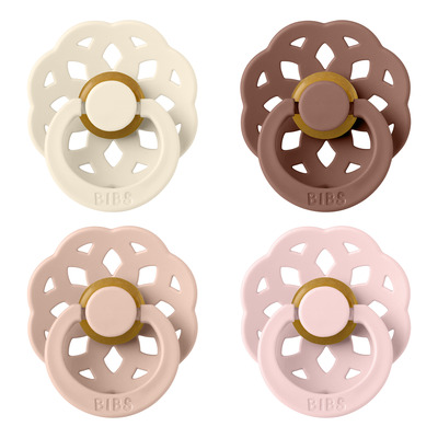 4-pack BIBS Boheme Latex-nucklar i färgerna Ivory, Blush, Woodchuck & Blossom