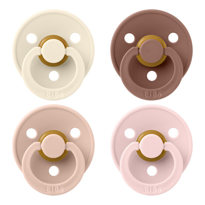 Den klassiska BIBS Colour Latex-nappen i färgerna Ivory, Blush, Woodchuck och Blossom