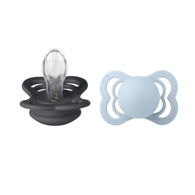 Nappar är i två olika storlekar, storlek 1 lämplig från 0+ månader och storlek 2 från 6+ månader. Napparna kommer i 2-pack i färgerna Iron & Baby Blue,, men finns även i andra fina färger och kombinationer.