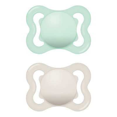 MAM Air-nappen är utformad med en platt, symmetrisk silikonnapp och extra stora lufthål som gör att barnets känsliga hud kan andas fritt. Den unika designen gör det också möjligt för föräldrar att se barnets leende även när nappen används. Den unika MAM SkinSoft-silikonytan på nappen känns extra mjuk och bekväm, vilket gör det lättare för barnet att acceptera nappen. Den ortodontiska formen stöder en sund utveckling av barnets käke och tänder.