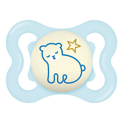 MAM Supreme Night Silikon Napp är utformad i samarbete med tandläkare och barnläkare för att minska trycket på barnets käkar och tänder. Nappen har en sugdel som är 60% tunnare än vanliga nappar, vilket gör den fyra gånger så mjuk och flexibel som de flesta andra nappar. De extra stora lufthålen gör MAM Supreme perfekt för barn med känslig hud. Den här nappen är perfekt att använda på natten eftersom den lyser i mörkret.