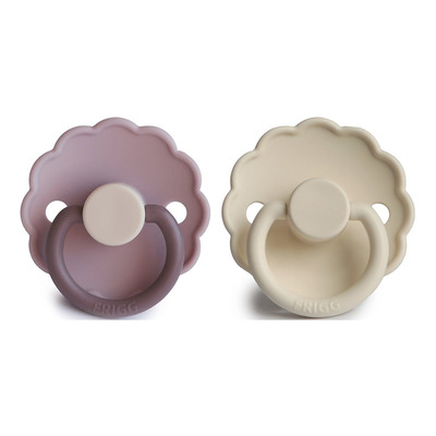 2-pack med nappar från FRIGGS Daisy-kollektionen med en sköld av latex som efterliknar blomblad. Den här nappen, med sin blomliknande och detaljorienterade design, är ett perfekt exempel på när mode möter funktionalitet. Napparna är både eleganta i designen samt utvecklade för att matcha det fysiologiska skede barnet befinner sig i. FRIGG Daisy har en rund bröstvårteform som påminner om mammans bröst i både form och material. Bebisen bildar ett vakuum med sin tunga runt nappen precis som runt mammans bröstvårta.
