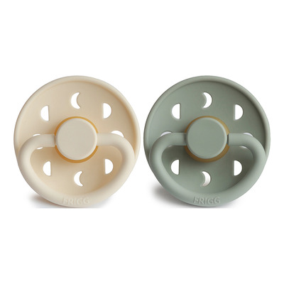 FRIGG Moon Phase Rund Latex Cream/Sage är ett 2-pack med fina nappar inspirerade av månens rörelse