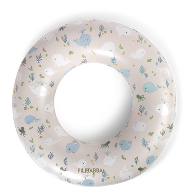 Filibabba Badring är en uppblåsbar badring tillverkad av högkvalitativ PVC med en tjocklek på 0,25 mm. Den blåses upp via en säkerhetsventil som därefter trycks in så att den inte stör vid vattenlek. Diameter: 40/22 cm.