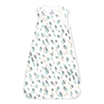SwaddleMe Sovpåse är en mjuk och praktisk babyfilt som passar för barn från 3-18 månader. Den är tillverkad av 100% bomull och har ett TOG-värde på 1,0, vilket gör den lämplig att använda året runt. Sovpåsen bärs över pyjamasen och gör att barnet kan sova med armarna fria. Den extra långa dragkedjan gör det enkelt att byta blöja utan att sömnen störs.